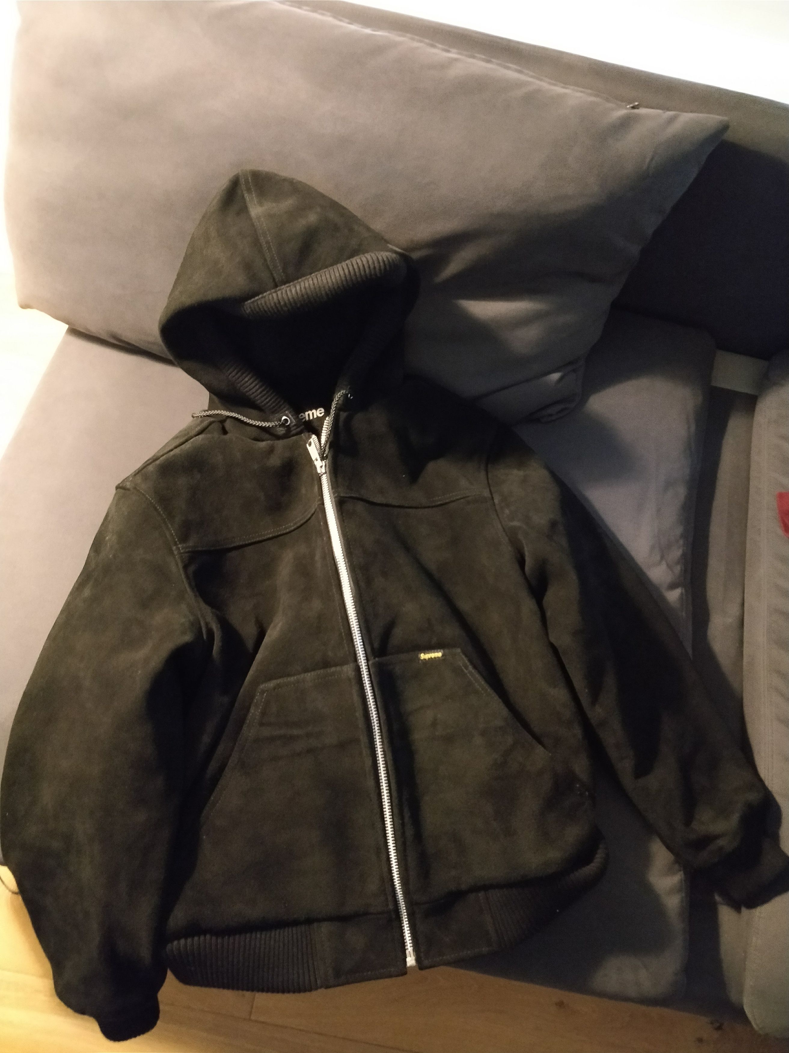 Product Item: Supreme hooded hotsell suede work jacket